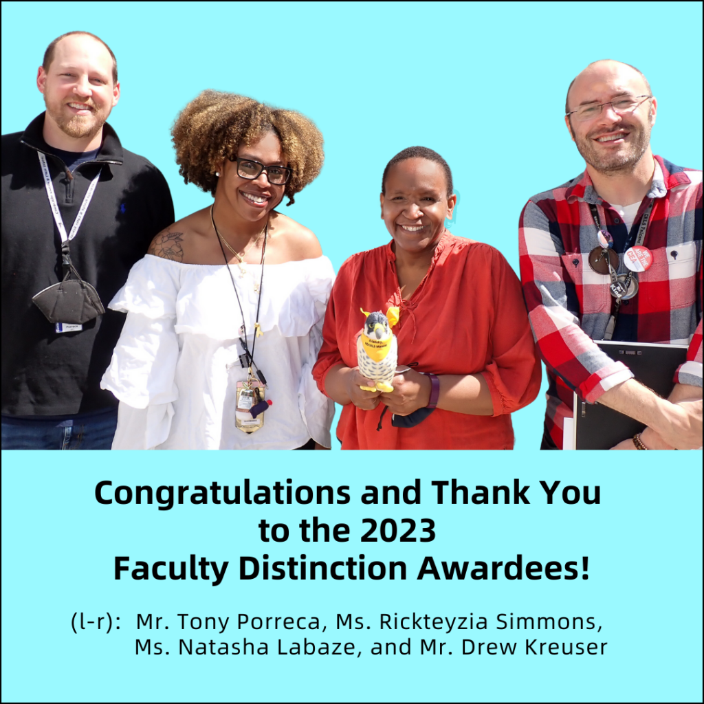 Four Faculty Distinction Awards, sponsored by Friends of CRLS and presented by Principal Smith during the graduation ceremony on June 8.We assisted the Class of 2023 in thanking four notable educators among the many who were positive influences during their years at CRLS. History teacher Ms. Rickteyzia Simmons was honored along with three teachers from the English Language Arts department: Ms. Natasha Labaze, Mr. Drew Kreuser, and Mr. Tony Porreca. Dedication, inspiration, kindness, communication, community building, and humor are but a few of these honorees’ qualities appreciated by their grateful students.